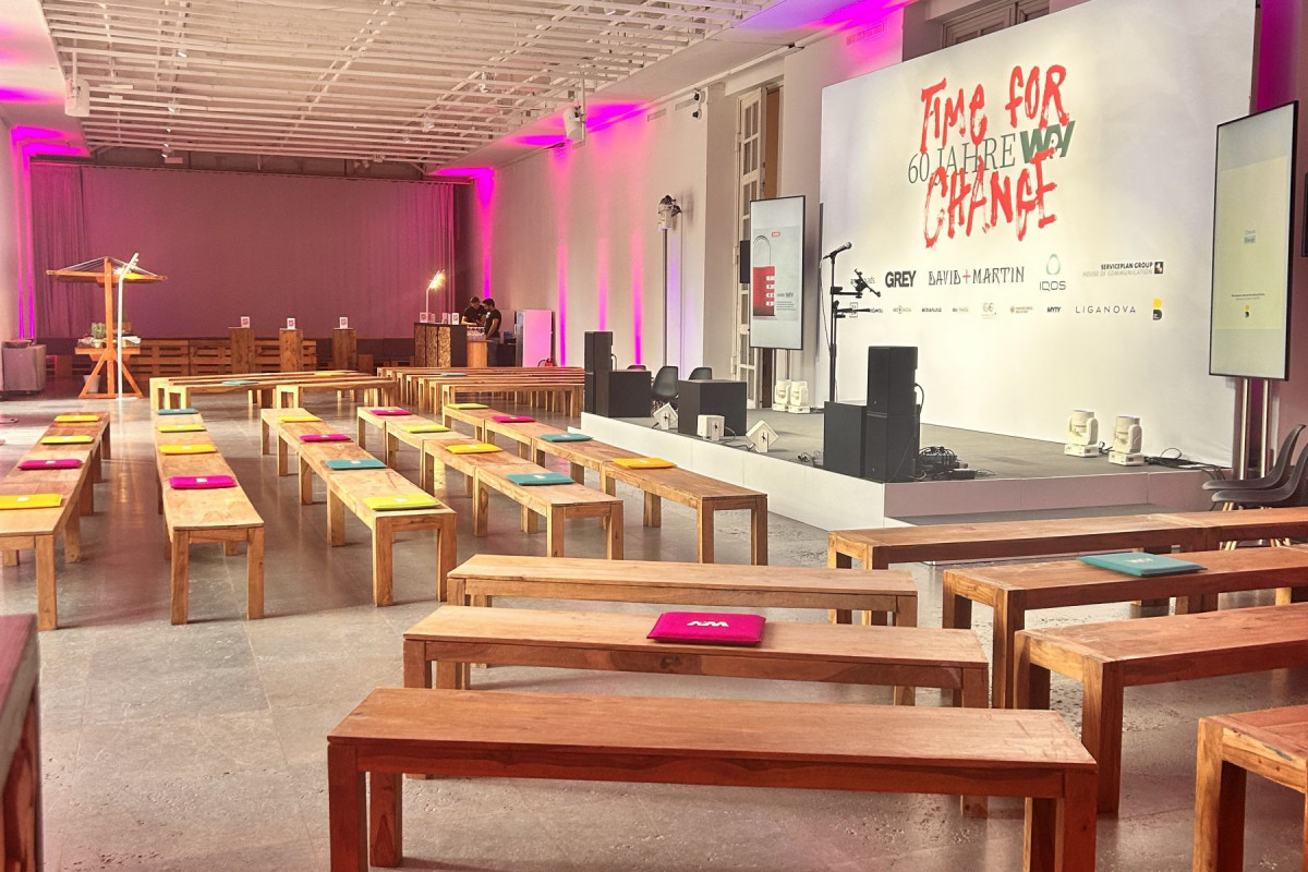HDK - Terrassensaal & Nordterrasse w&v – Time for change Kunde: w&v Verlag Personen: 250 Leistungen: Konzepterarbeitung, Erstellung der Genehmigungspläne, Einreichung der Genehmigung bei der Stadt & sämtlichen zuständigen Behörden, Auswahl, Buchung und Betreuung sämtlicher Gewerke, Eventbetreuung, Eventnachkalkuletion /
